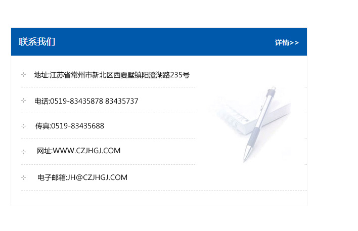 傳真:0519-83435688    郵編:213135    網址:WWW.czjhgj_com.villa-expo.com    電子郵箱:JH@czjhgj_com.villa-expo.com
